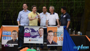 A Praça Guido Marliére recebeu um bom público na tarde deste domingo (26) para a inauguração do comitê de campanha dos candidatos: Fred Costa (Federal); Rodrigo Pacheco (Senador) e Dirceu Ribeiro (Estadual). O prefeito municipal Edson Teixeira Filho e o vice-prefeito Vinícius Samôr de Lacerda, na condição dos principais anfitriões, fizeram as honras da casa e receberam os visitantes. A imprensa esteve presente e os simpatizantes também.