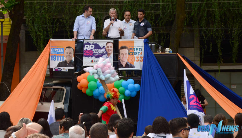 A Praça Guido Marliére recebeu um bom público na tarde deste domingo (26) para a inauguração do comitê de campanha dos candidatos: Fred Costa (Federal); Rodrigo Pacheco (Senador) e Dirceu Ribeiro (Estadual). O prefeito municipal Edson Teixeira Filho e o vice-prefeito Vinícius Samôr de Lacerda, na condição dos principais anfitriões, fizeram as honras da casa e receberam os visitantes. A imprensa esteve presente e os simpatizantes também.