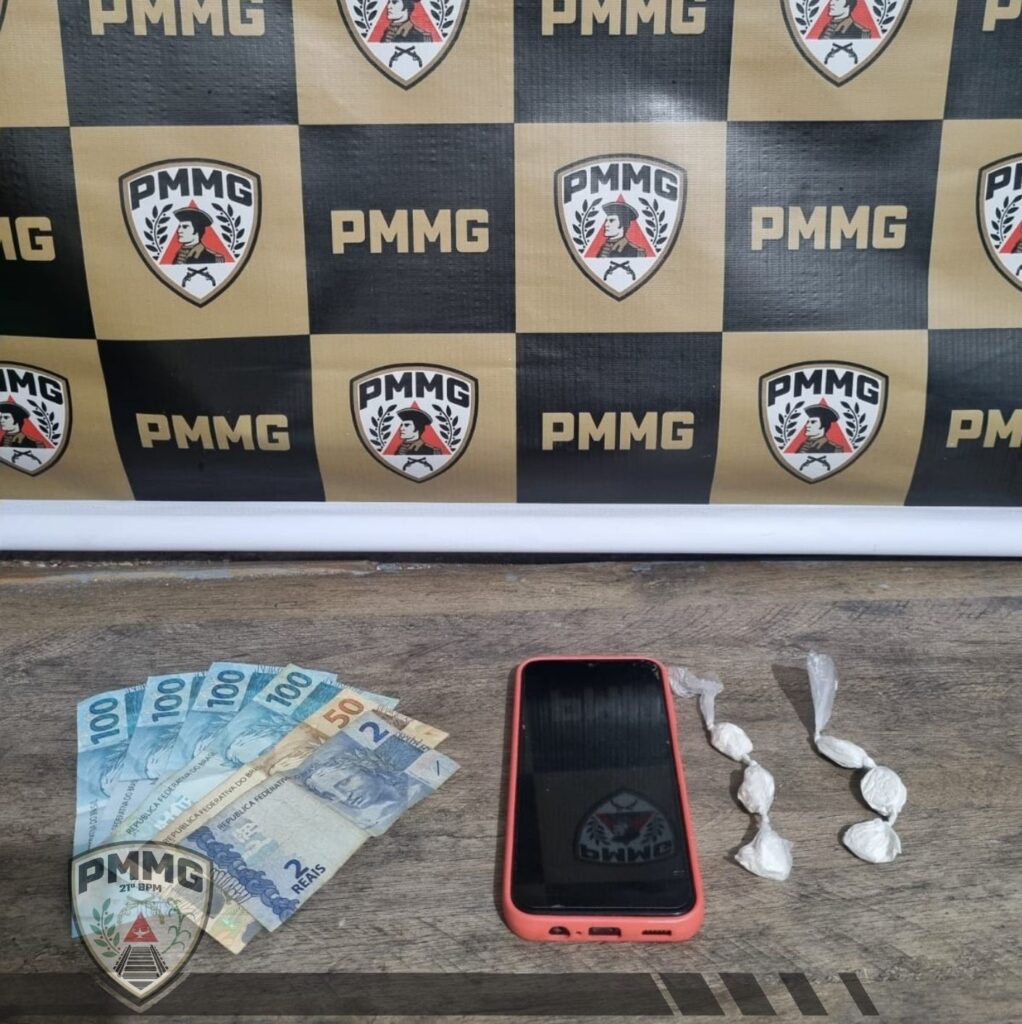 A Polícia Militar prendeu um homem de 26 anos por tráfico ilícito de drogas na madrugada do dia 16 de fevereiro de 2026, na Praça Raimundo Carneiro, Centro de Senador Firmino/MG, durante evento carnavalesco realizado no local.