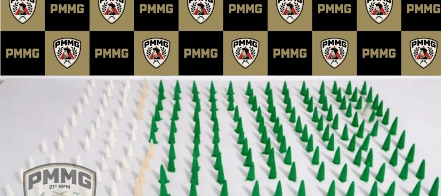 Em continuidade às diligências, os militares fizeram contato com a suspeita, que autorizou a entrada em sua residência. Durante buscas, foram localizados diversos entorpecentes escondidos em móveis do imóvel, sendo identificados pinos contendo substância análoga à cocaína e pedras de substância semelhante ao crack.