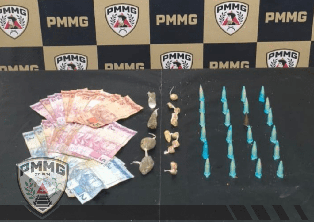 Diante da fundada suspeita, foi realizada a abordagem de dois indivíduos, ambos de 16 anos. Durante as diligências, com apoio de equipe especializada, foram localizadas porções de substâncias análogas à cocaína, crack e maconha, além de dinheiro em espécie, escondidas em um ponto específico no interior do cemitério.