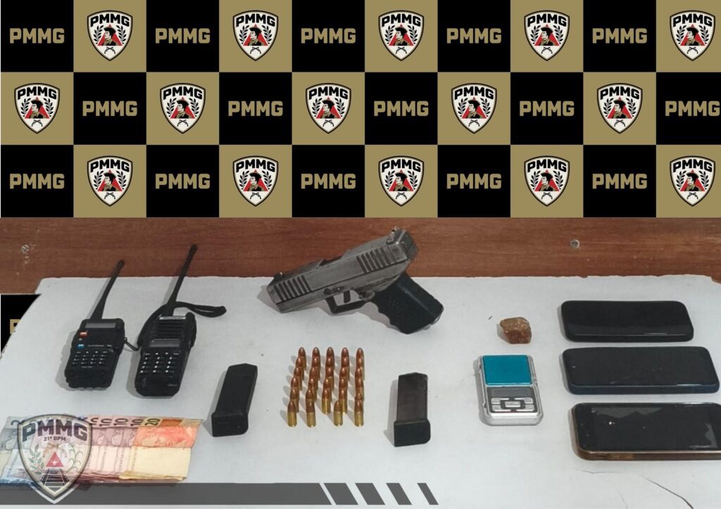 Um indivíduo de 24 anos foi preso em flagrante pelos crimes de tráfico de drogas, porte ilegal de arma de fogo e corrupção de menor. Um adolescente de 15 anos foi apreendido por ato infracional análogo ao tráfico. Ambos resistiram à abordagem, sendo necessário o uso de algemas, e foram encaminhados para atendimento médico e, posteriormente, à delegacia.