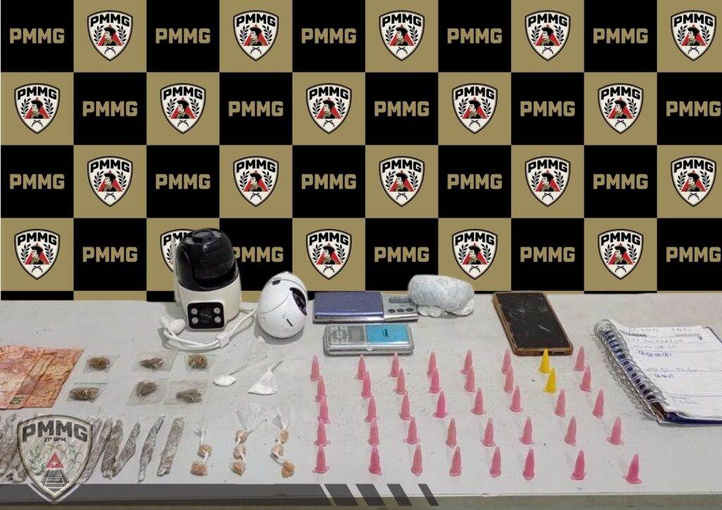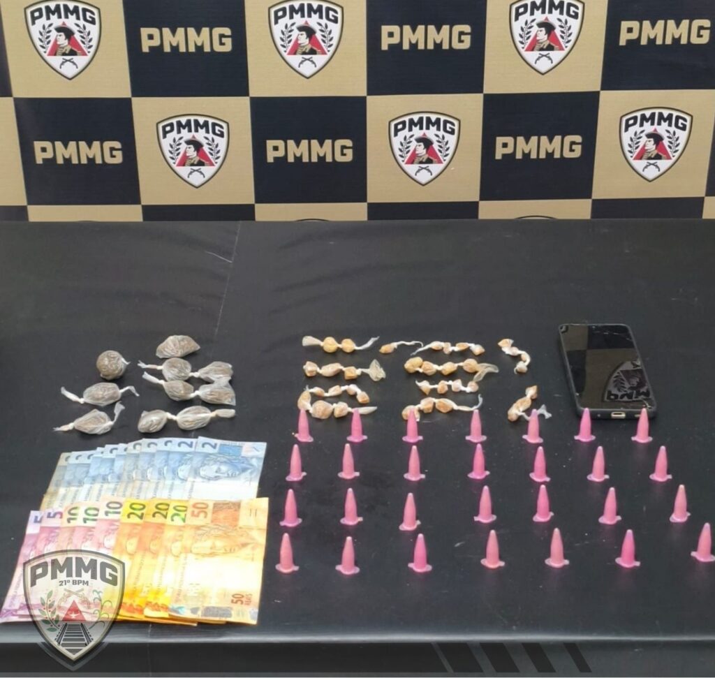 Durante patrulhamento preventivo no bairro Cristo Redentor, em Ubá, a equipe policial se posicionou em ponto estratégico e passou a observar intensa movimentação suspeita, com veículos realizando contato rápido com um indivíduo, que entregava e recebia objetos, conduta compatível com o tráfico de drogas em local já conhecido pela atuação criminosa.