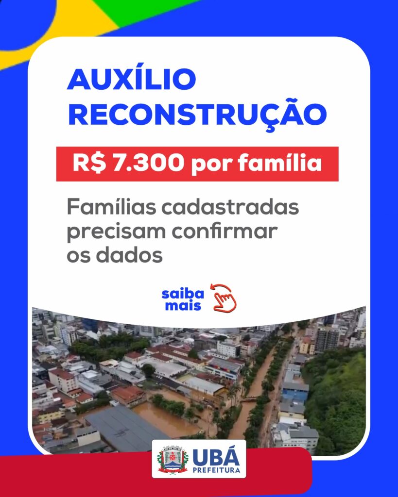 A Prefeitura de Ubá orienta as famílias atingidas pelas chuvas e já cadastradas no sistema municipal a realizarem a confirmação dos dados no Portal do Cidadão, etapa essencial para a liberação do Auxílio Reconstrução, no valor de R$ 7.300 por família.