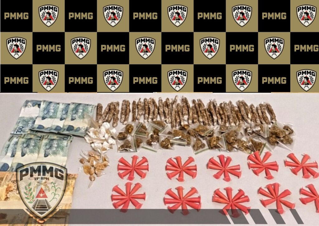 Em buscas, foram encontradas 77 porções de substâncias análogas à cocaína,72 de maconha e 12 de crack, além de certa quantia em dinheiro, confirmando a atividade ilícita.