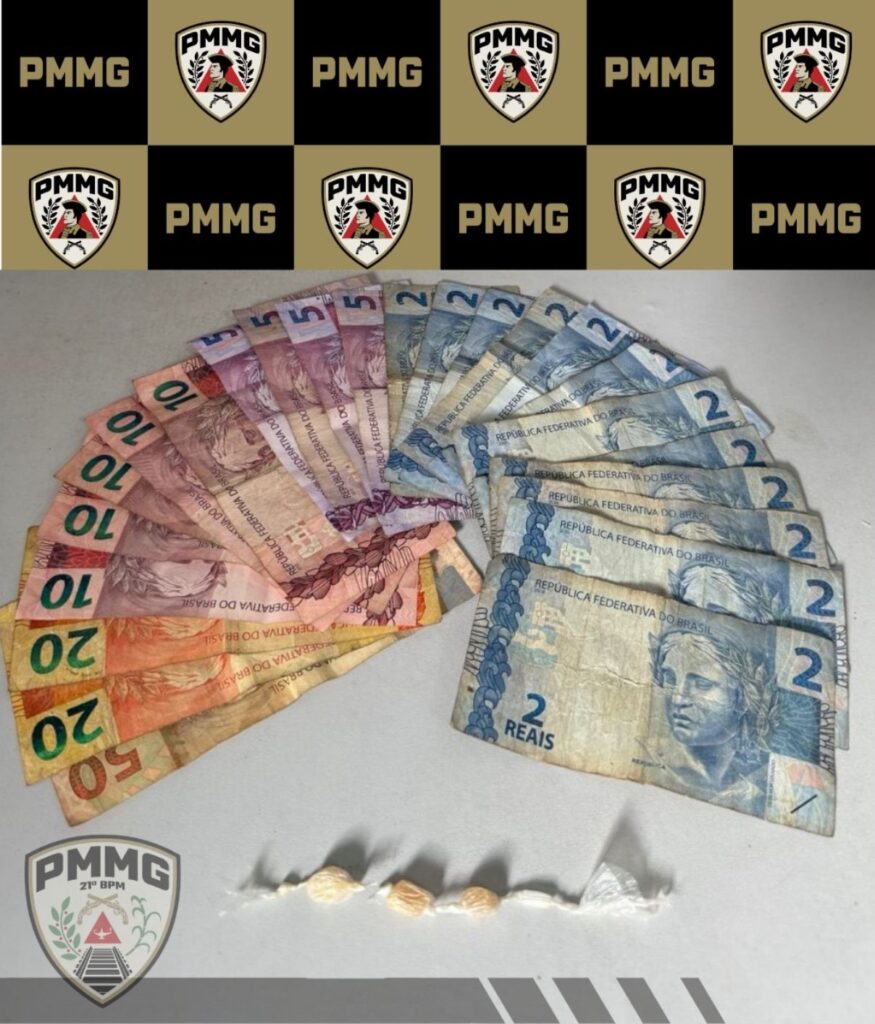Em continuidade, ao proceder à busca no segundo abordado, de 22 anos, foi localizada certa quantia em dinheiro fracionado, acondicionada em seu bolso. Embora não tenha sido encontrada droga em sua posse, a conduta previamente observada pelos militares, associada ao contexto da ocorrência e ao local conhecido pelo tráfico, indicou sua atuação como possível fornecedor do entorpecente.